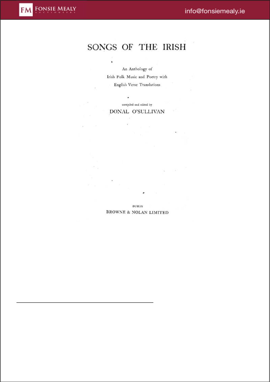 O’Sullivan (Donal) Songs of the Irish, lg. 4to D. 1960. First Edn.,; Fox (C.