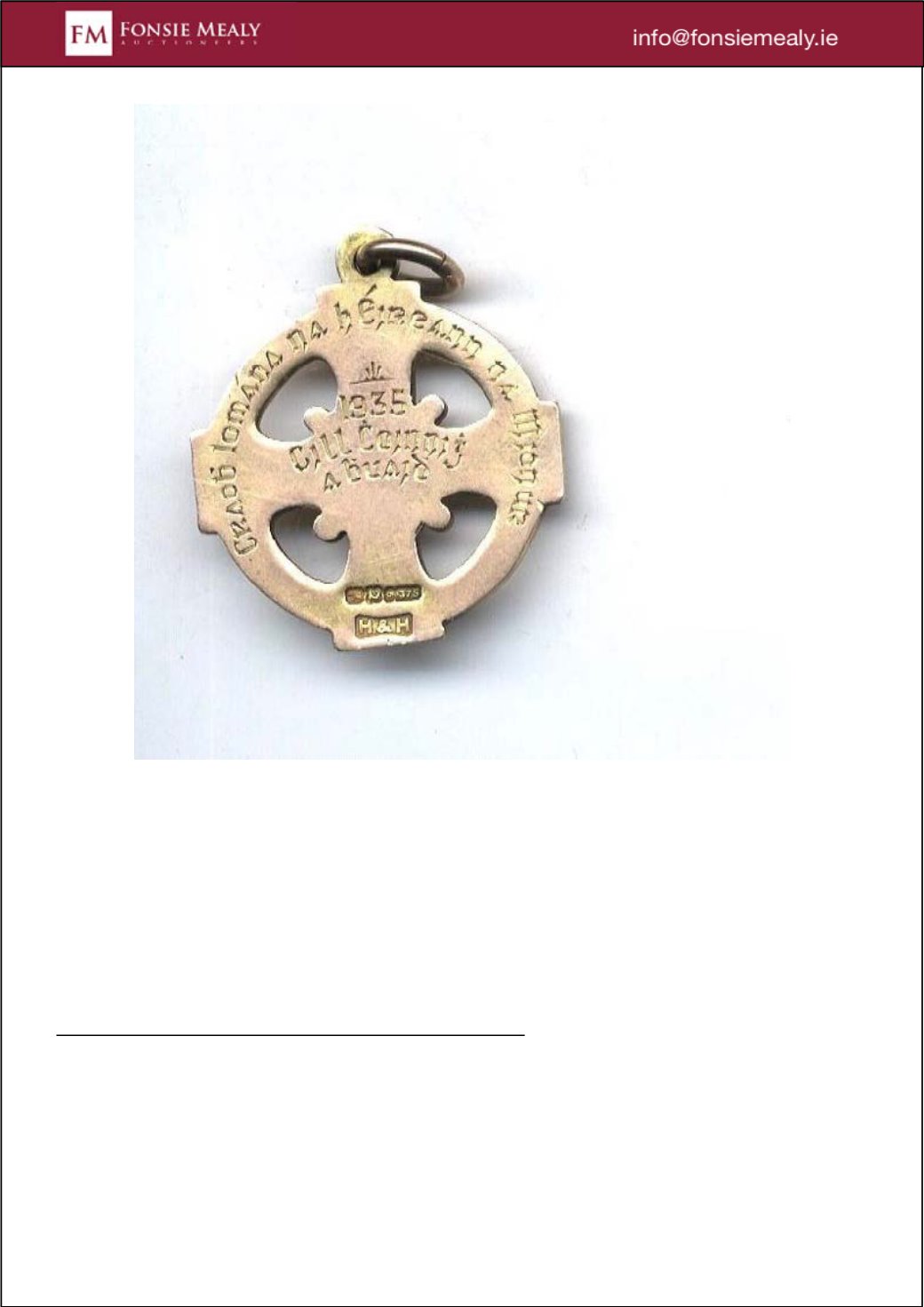 Celtic cross design, pierced centre, inscribed on reverse ‘’Craobh Iomana